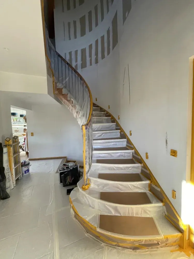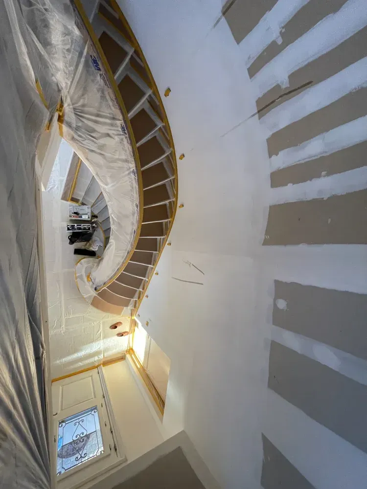 EM Peinture & Décoration, votre expert en peinture intérieure et extérieure basé à Sainte-Maxime, a récemment relevé un défi de taille au Plan de la Tour. Nous avons été sollicités pour réaliser des travaux de peinture et d'enduisage dans une impressionnante cage d'escalier de 7 mètres de hauteur. Grâce à une étude de couleur fournie par Farrow & Ball, nous avons pu offrir à nos clients une finition sur mesure, respectant scrupuleusement leurs attentes.
