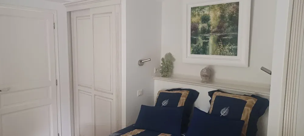 EM Peinture & Décoration, votre expert en peinture intérieure et extérieure à Sainte-Maxime, est fier de vous présenter notre dernier projet réalisé à Cogolin. Nous avons récemment achevé un chantier de peinture où nous avons appliqué un marmorino sur les murs de la cuisine et sur le mur de tête de lit de la chambre. Le reste des murs et le plafond de la chambre ont été peints en blanc mat lessivable, tout en nous adaptant aux patines existantes sur les boiseries.
