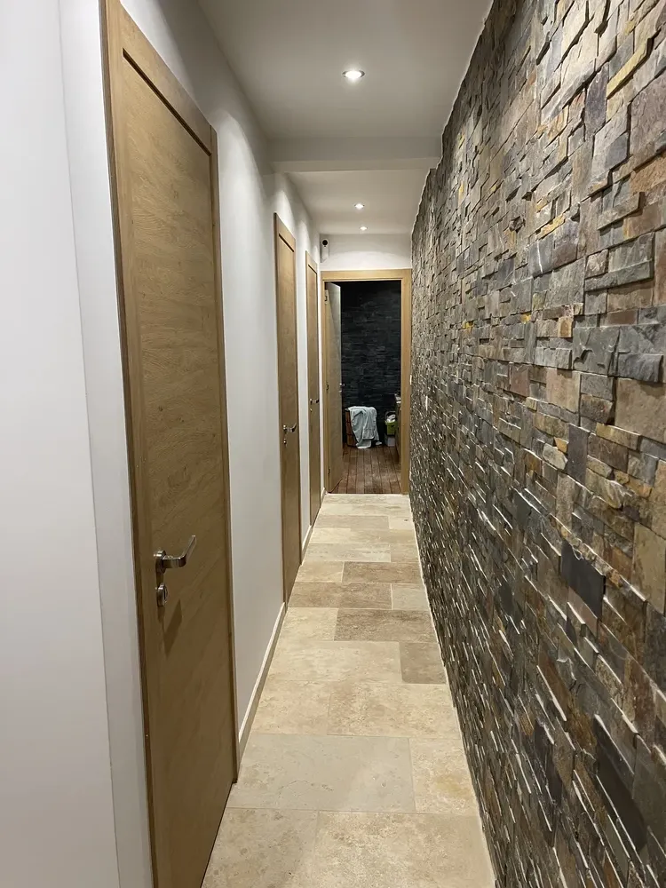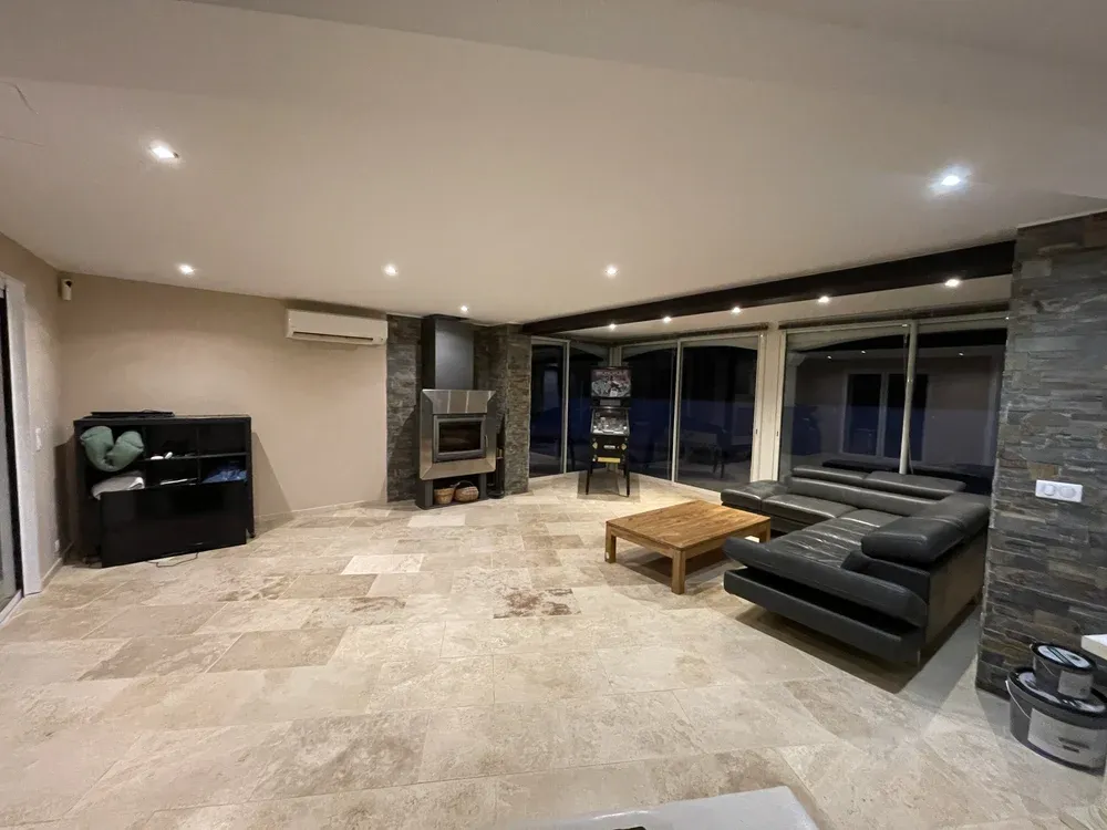 Lors de ce projet, nous avons rencontré plusieurs problèmes, notamment des fissures, des décollements d'enduit et de peinture. Grâce à notre expertise, nous avons su appliquer des trames et réparer toutes les fissures. Nos professionnels ont partiellement enduit les murs avant de procéder à une mise en peinture à l'airless. Le résultat ? Un mur de couleur dans le salon qui apporte une touche de modernité et de style à l'intérieur de la maison.