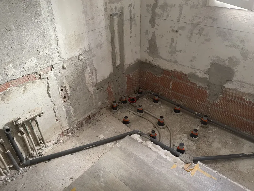 - Création d'une douche à l'italienne avec receveur affleurant le sol.